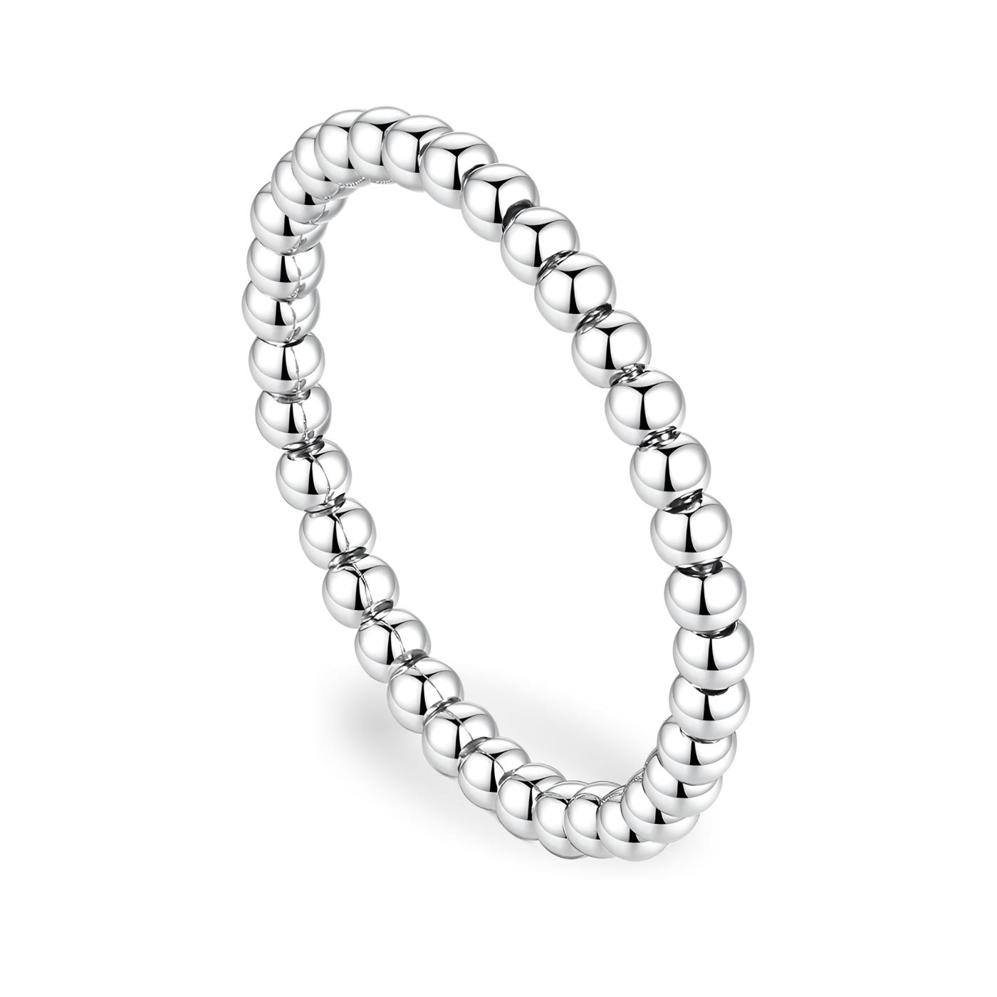 El diseño geométrico de bolitas crea una apariencia única y sofisticada que se adapta perfectamente a cualquier ocasión, ya sea una celebración especial o una salida casual. La disposición de las pequeñas esferas de plata alrededor de la pulsera proporciona un toque moderno y atractivo, destacando sobre la piel con un sutil resplandor plateado.